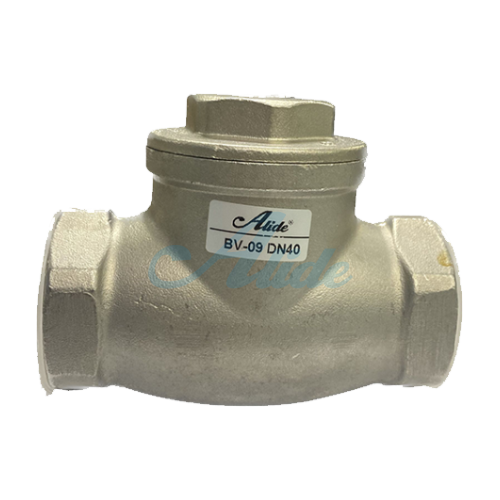 The MV-51 Swing Disc Check Valve (represented by BV-09 DN40 in the illustration) from Alide is engineered to permit media flow in only one direction, automatically preventing backflow. Its main mechanism is a disc that swings on a pin (or hinge), sealing the flow path when the downstream pressure exceeds the upstream pressure, or when the flow ceases. The robust structure derived from Investment Casting for the body, cap, and disc ensures durable performance.